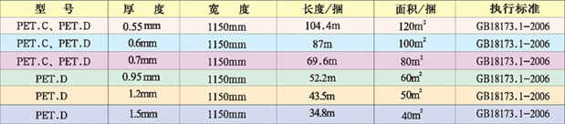 1.產(chǎn)品構成 SY-PET聚脂高強復合防水卷材,選用聚乙烯含有PET材質(zhì)做防水芯層,兩表面用熱軋非織造布稱為PET.C防水卷材,兩表面用短纖針刺非織造布做增強層稱為PET.D防水卷材(兩種卷材以下簡稱PET防水卷材) 2.產(chǎn)品特點 a. PET防水卷材最大的特點就是PET材質(zhì)夾在中間,大大提高了產(chǎn)品的機械強度,而且質(zhì)地柔軟并附有彈性,隨服性好,易施工。 b. PET防水卷材上下非織造布纖維呈無規(guī)則立體交叉結構,形成多孔狀表面,可用多種膠粘劑粘接,均可收到良好的粘接效果。 c. PET防水卷材與本公司生產(chǎn)的SY-JF-1高效膠粉或SY-JZJ-1膠粘劑、SY -JF-2接縫密封膠粉配套施工,粘接剝離強度可達到規(guī)范要求的15N/cm. d. PET防水卷材用水泥膠粘劑粘結時,水泥膠粘劑進入卷材的表面隙中,隨水泥固化為一體,故粘接永久牢固。 e. 施工后的PET防水卷材表面可直接進行裝飾、裝修(如貼瓷磚,鑲地板磚等) f. 對粘貼PET防水卷材的水泥基面含水率沒有特殊要求,只要沒有明水即可施工,且保證工程質(zhì)量。 g. 該產(chǎn)品無害、無毒、無污染,屬綠色環(huán)保型產(chǎn)品。 3.使用范圍 該產(chǎn)品適用于建筑、水利、環(huán)保和交通等領域的防水、防滲、防潮、隔汽和防污染工程。如建筑工程:屋面、地下、廁浴間等;水利工程:水庫、堤壩、圍堰、渠道等;環(huán)保工程:垃圾填埋場、污水處理廠、冶金化工污染物堆放場等;交通工程:橋梁、地鐵、公路、鐵路、洞體、渠道等;園林工程:屋頂花園、種植屋面、園林小品等。 4.產(chǎn)品規(guī)格(依據(jù)工程需要和國家有關規(guī)定在下列規(guī)格中選擇,如有特殊要求另與我公司商定)